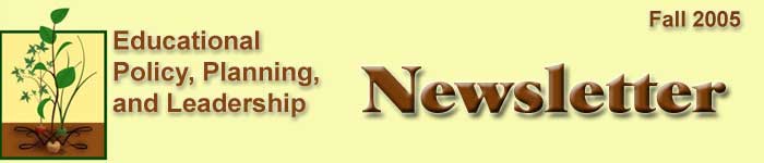 Welcome to the inaugural edition of the EPPL Newsletter from the School of Education at the College of William and Mary. We are proud to offer a Web based newsletter in addition to the print copy that you have traditionally received from the school. We hope that you enjoy the electronic version of this newsletter which will aid you in appreciation of the program we offer. |